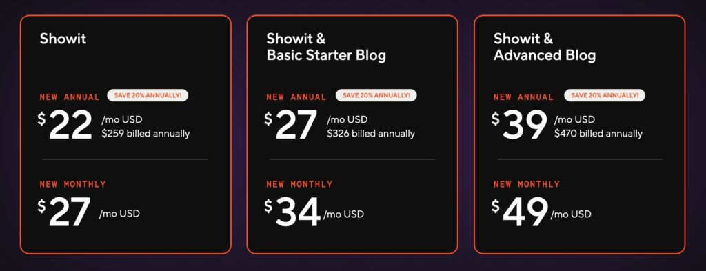 The reality is that the cost of operating and improving Showit has continued to rise; and to keep delivering the level of reliability, support, and care you have come to expect from us, this change has become necessary.