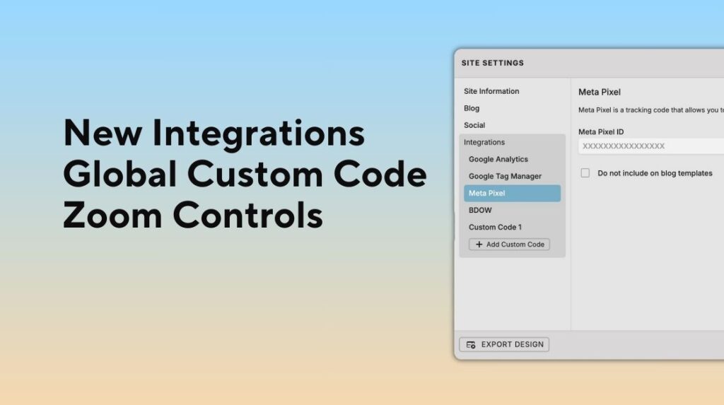 Showit added three new site-wide integrations in 2025, all available directly in Site Settings.