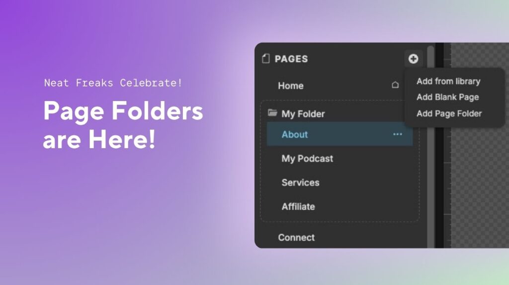 Page Folders are designed to support larger, more complex sites by keeping your workspace clean and easy to navigate, without affecting anything on your published site.