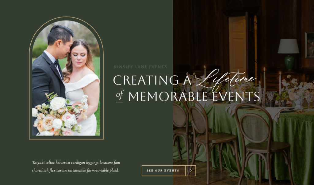 If you’re searching for website templates for event planners that feel refined and editorial, Kinsley Lane is a standout. This Showit design is ideal for wedding pros, corporate event planners, and event businesses who want an elevated online presence with the pages you need to showcase your work, build trust with testimonials, and guide clients to inquire.